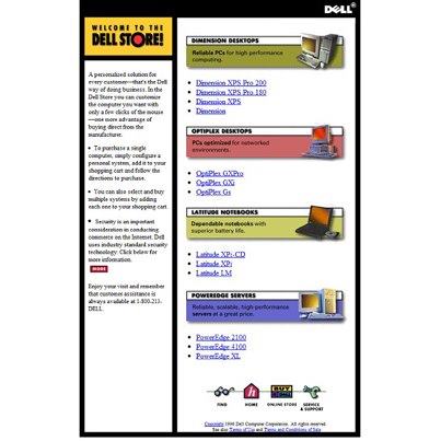 A DELL iniciou as vendas através do site www.dell.com, que no final do ano estava gerando vendas acima de US$ 1 milhão por dia, e se torna a primeira empresa a conseguir faturamento acima de 1 mihão com vendas online.